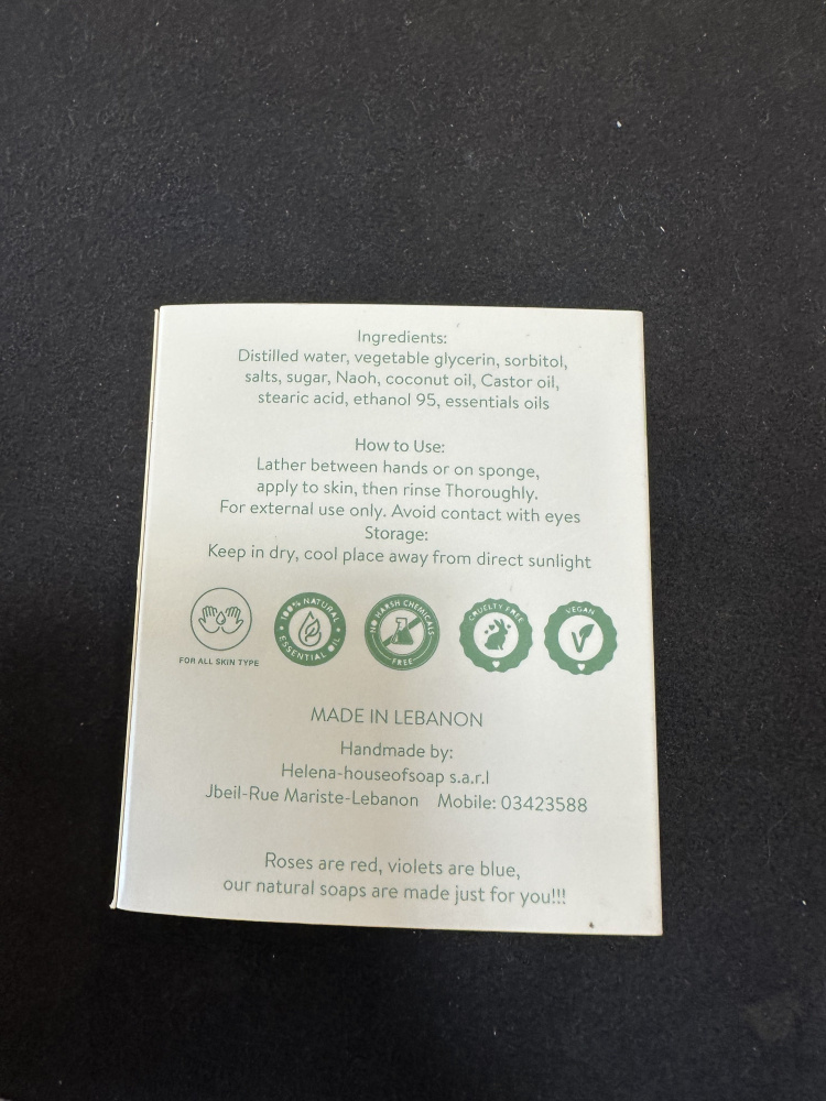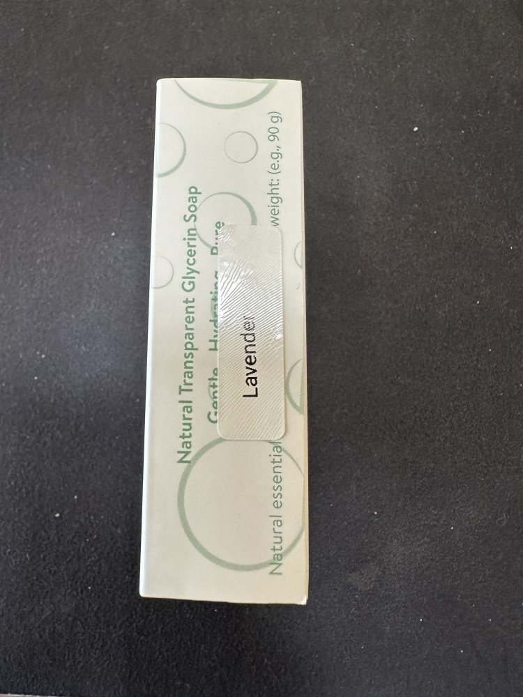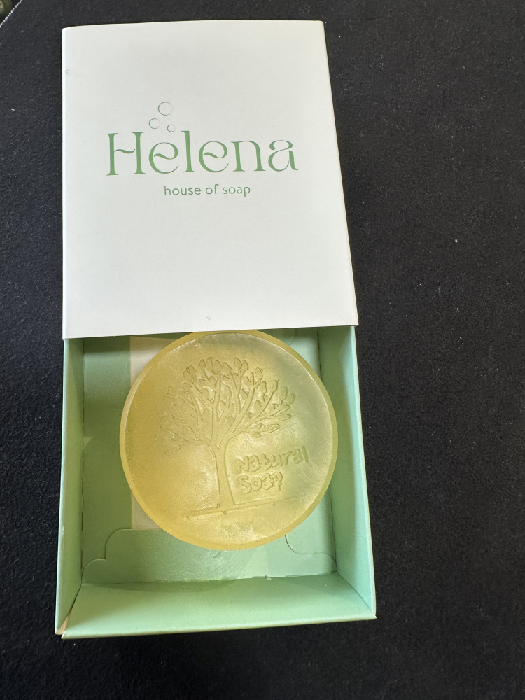 Helena Glycerin Soap (Lavender)Description:Our transparent soap glycerin is handcrafted with care, using plant-based ingredients and essential oils. It gently cleanses the skin while maintaining its natural moisture balance, leaving it soft, smooth, and refreshed. They are also eco-friendly, as they use minimal packaging and biodegradable materials, cruelty-free testing, and fair-trade practices. We invite you to try our products and experience the difference that nature can makeIngredients:Distilled water, vegetable glycerin, sorbitol, salts, sugar, Naoh, coconut oil, Castor oil, stearic acid, ethanol 95, essentials oilsHow to Use:Lather between hands or on sponge,apply to skin, then rinse Thoroughly.For external use only. Avoid contact with eyesStorage:Keep in dry, cool place away from direct sunlightNATURAL 100%