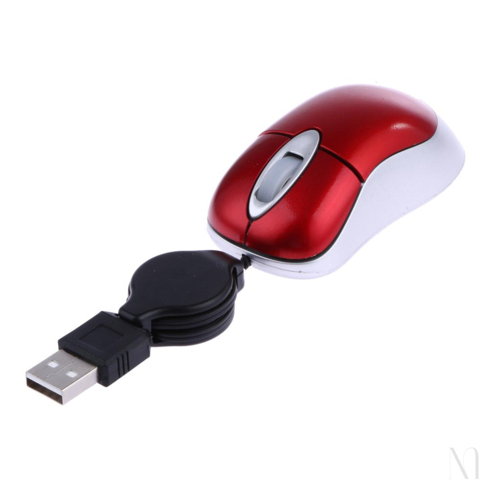 • USB connected 3-button Optical Mouse including wheel• Small size but comfortable design easily fits in your laptop bag, perfect for travel• Features a convenient fully-retractable USB cable and no need to wrap the cord around the mouse or deal with tangles• 1000 dpi optical tracking enables responsive cursor control for precise tracking and easy text selection• Color Red & Silver