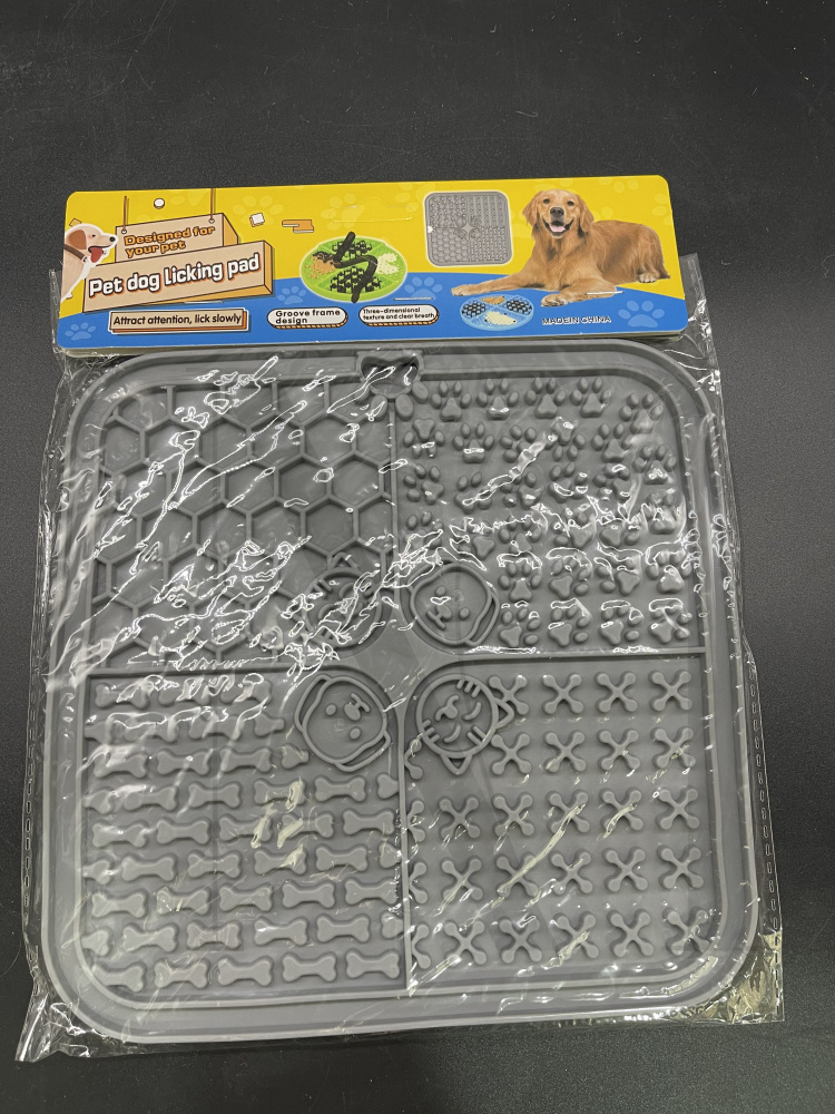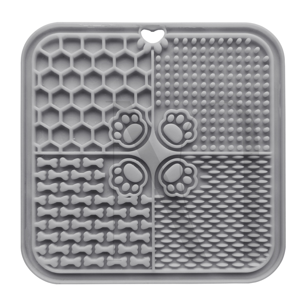 Interactive Dog Toys Licking Mat design with different zones of different patterns. Consist of interactive grids, cute bone and paw shape as well as two types of solid curved edges.These different patterns turn the eating time into a fun and enjo ...